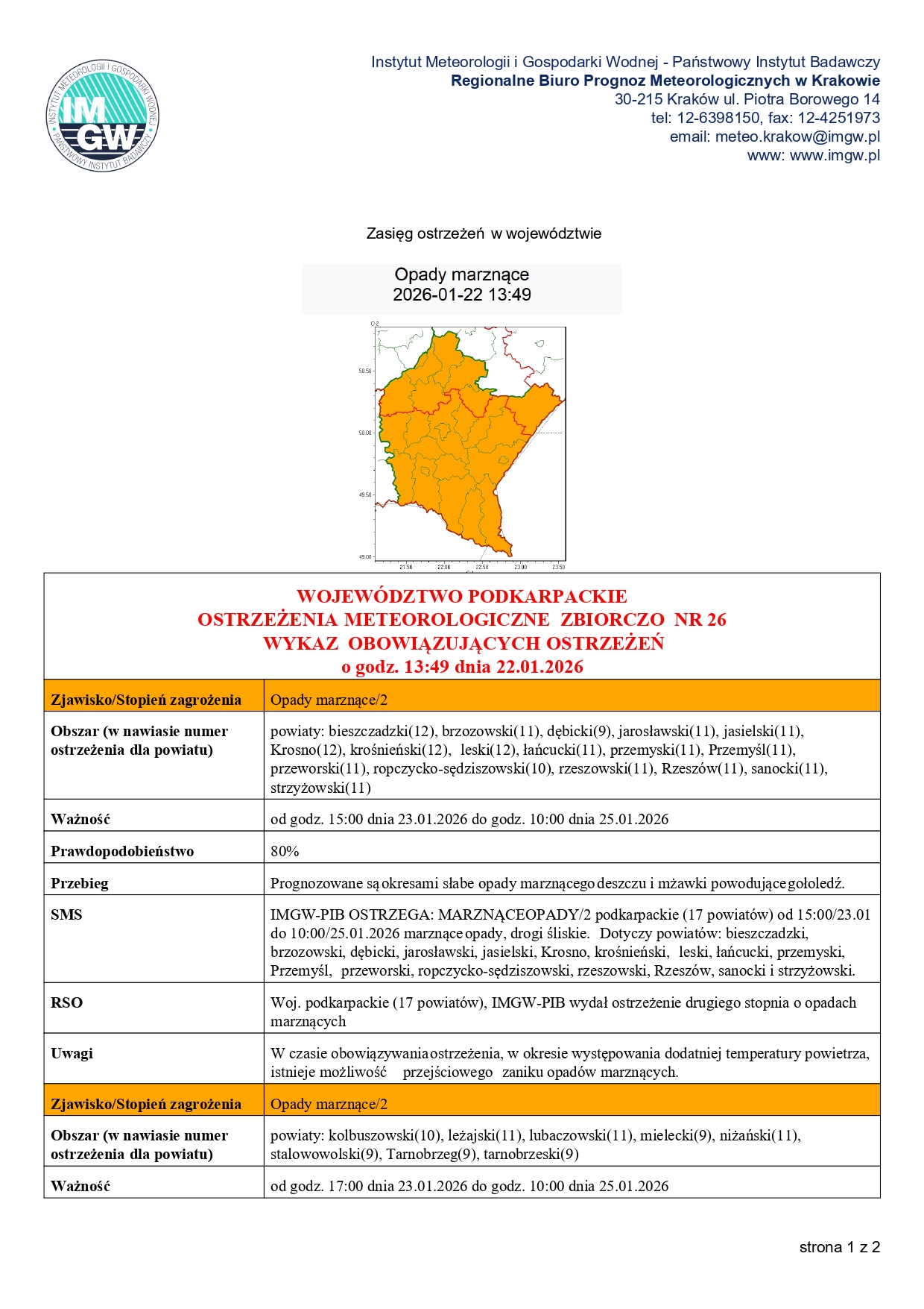 Ostrzeżenie meteorologiczne IMGW - marznące opady!