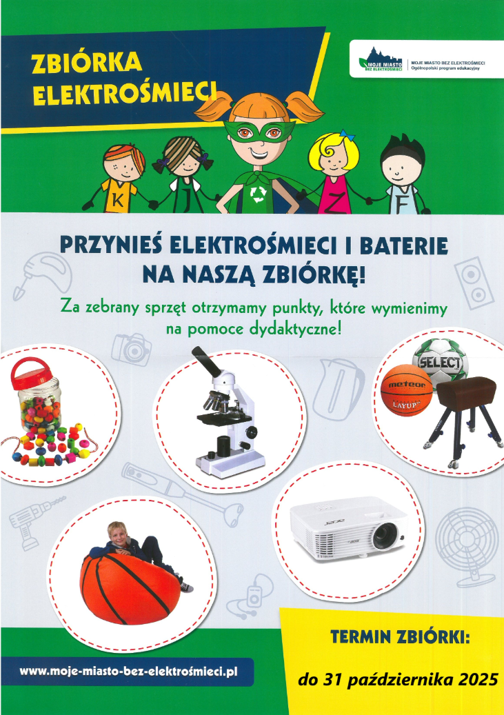 Zebrane elektrośmieci zostaną przekazane do recyklingu, a za uzyskane punkty szkoła otrzyma sprzęt sportowy i pomoce dydaktyczne.