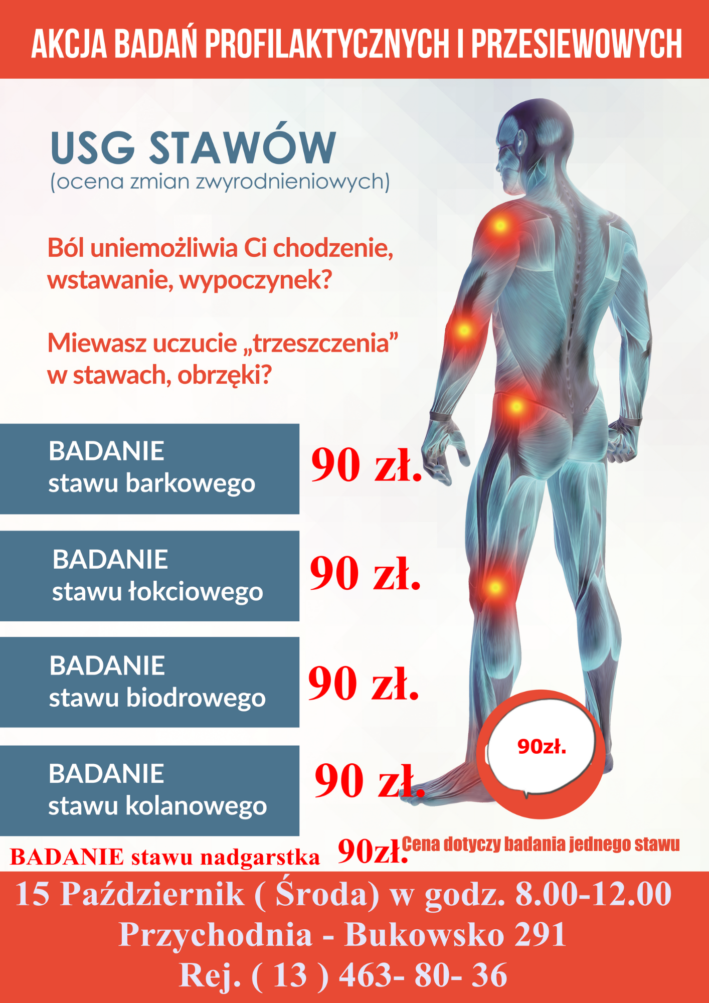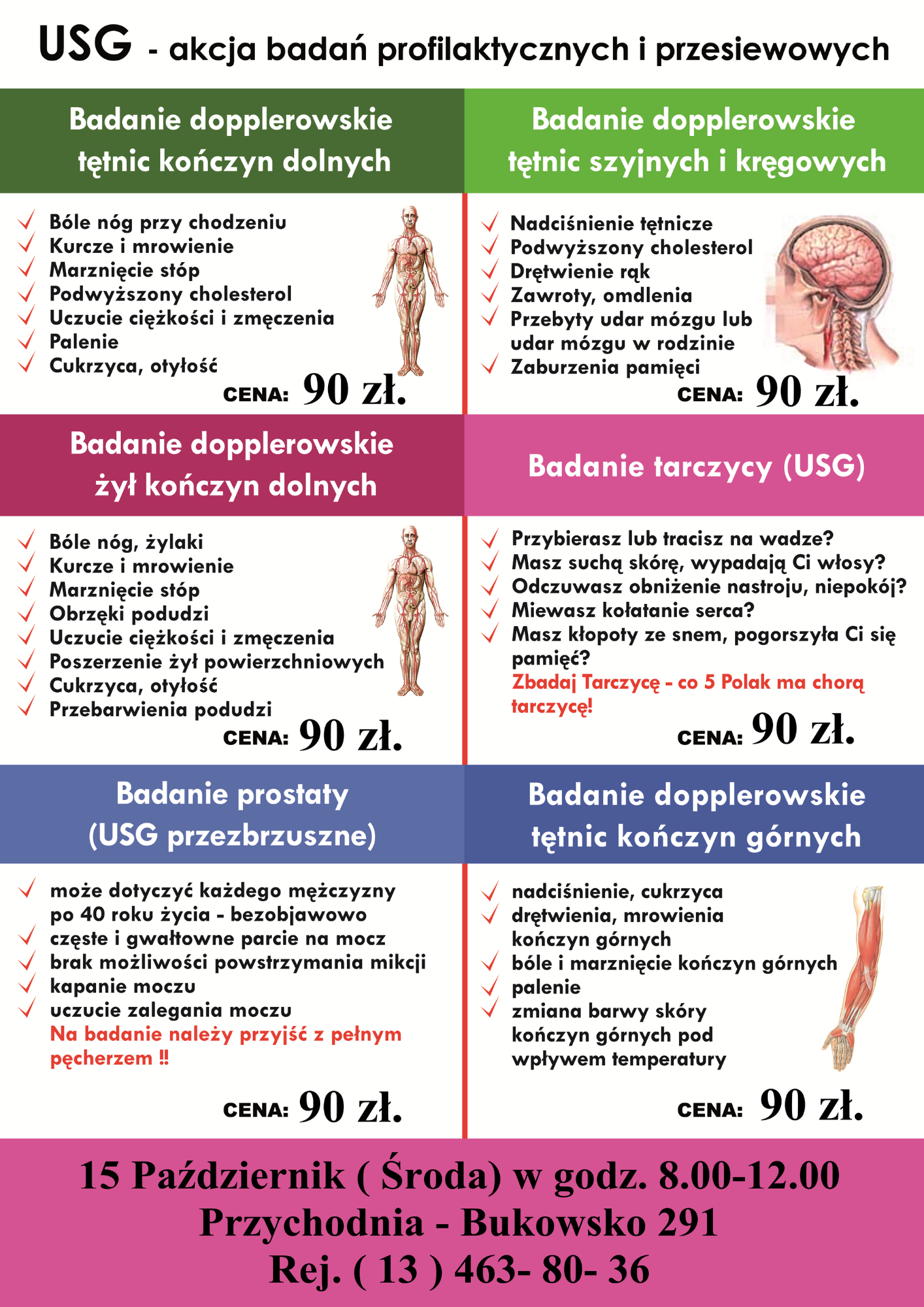 W dniu 15 października ( środa ) w godz. 8-12 w Ośrodek Zdrowia w Bukowsku będzie można odpłatnie wykonać badania USG Doppler.