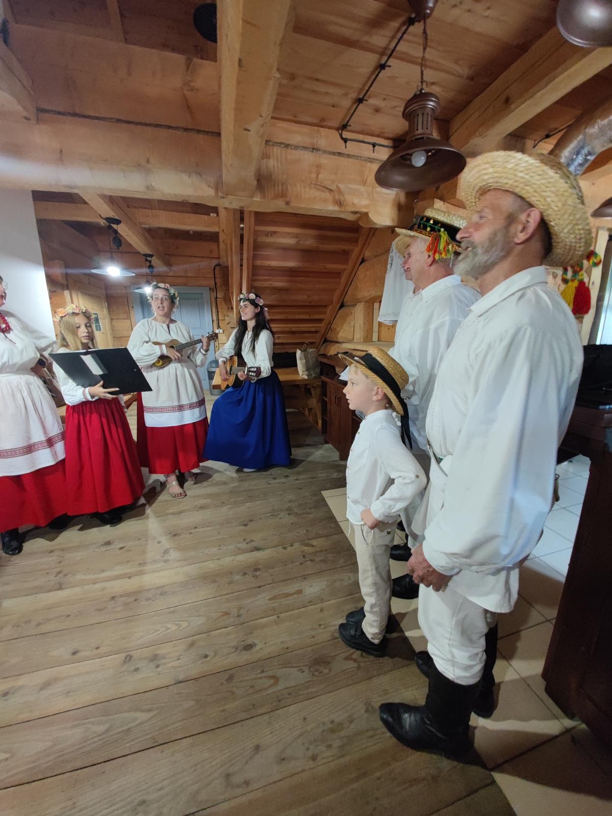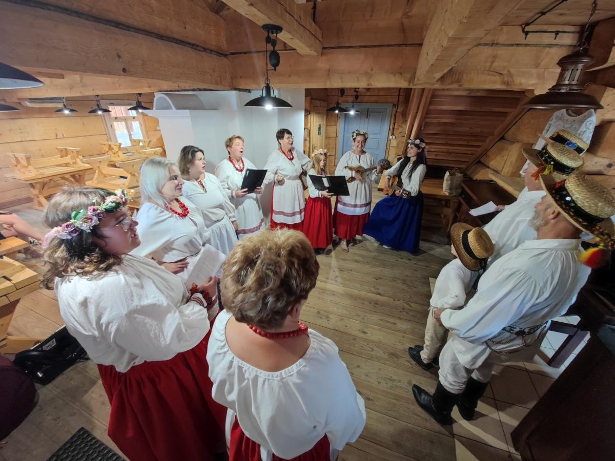 Zajęcia prowadziła Magdalena Zubel animatorka kultury, która wprowadziła uczestników w świat tradycyjnych melodii, głosowych ozdobników i dawnego stylu śpiewu. W trakcie warsztatów udało się odtworzyć wiele zapomnianych przyśpiewek, które niegdyś towarzyszyły najważniejszym momentom wesela – od błogosławieństwa, przez oczepiny, po zabawę taneczną.