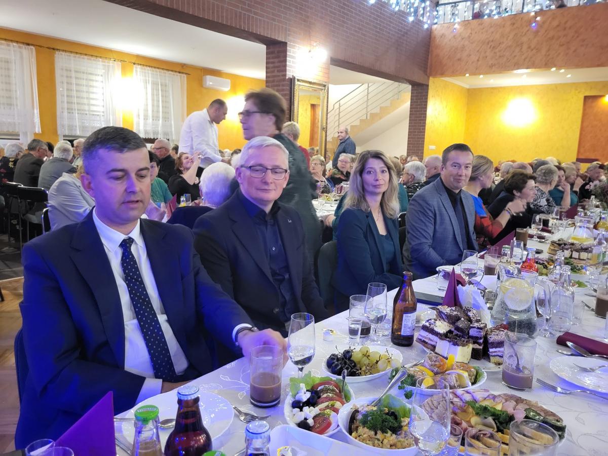 Uroczystość rozpoczęła się od oficjalnego powitania gości przez Starostę Sanockiego Roberta Pieszczocha oraz Wójta Gminy Bukowsko Marka Bańkowskiego. W swoich wystąpieniach podkreślali oni ważną rolę seniorów w życiu społecznym, ich doświadczenie, mądrość oraz wkład w rozwój naszych miejscowości. Wyrażono również wdzięczność za aktywność, inicjatywy oraz obecność, która niesie młodszym pokoleniom przykład troski i zaangażowania. Życzenia i słodki poczęstunek na ręce pana Wójta i Dyrektor CUS Ewy Sieradzkiej przekazał również Seniorom Starosta Obec Holcikovce Michał Flesar.