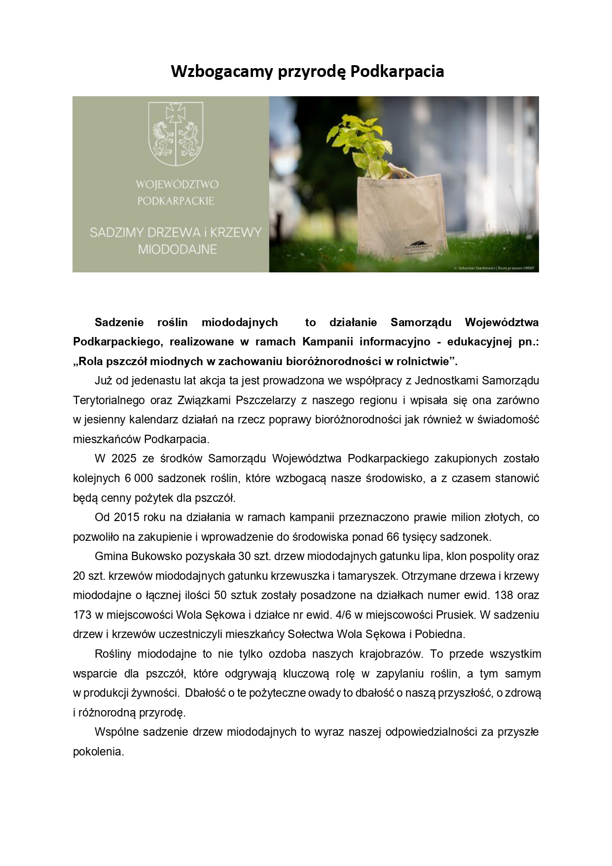 Gmina Bukowsko wzbogaca przyrodę Podkarpacia