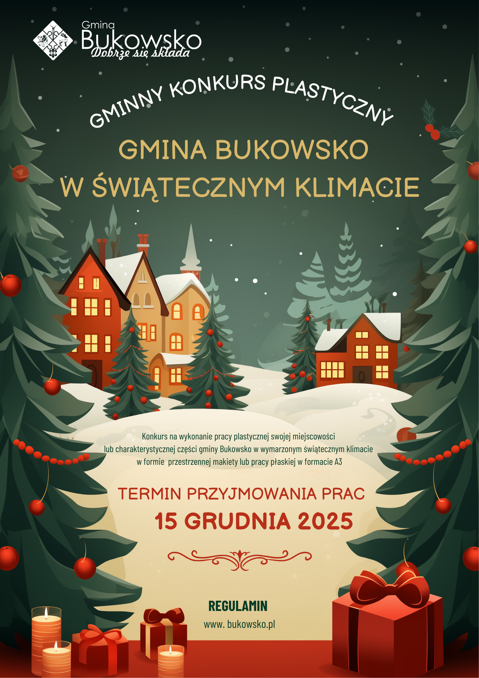Wójt Gminy Bukowsko Marek Bńkowski zapraszaa dzieci i młodzież uczęszczająca do Szkół Podstawowych w gminie Bukowsko do udziału w świątecznym konkursie plastycznym „Gmina Bukowsko w świątecznym klimacie”.