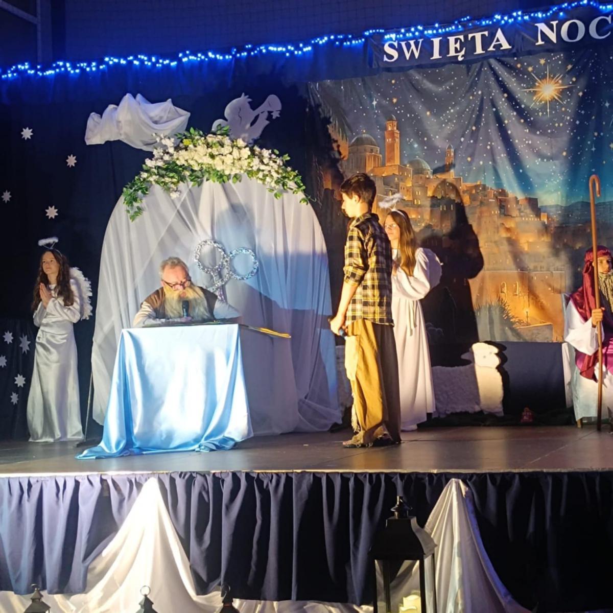 Wprowadzenie w niezwykły nastrój nadchodzących Świąt Bożego Narodzenia stało się faktem dzięki wzruszającemu i profesjonalnie przygotowanemu przedstawieniu jasełkowemu. Wydarzenie to było owocem ciężkiej pracy i zaangażowania, a w szczególności: p. Barbary Ciepły, p. Marioli Babiarz, p. Bożeny Skubisz, p. Sabiny Wojciechowskiej, p. Mariusza Prajznera, p. Lesława Pyrcaka, którzy pełnili rolę reżyserów i opiekunów artystycznych całego przedsięwzięcia. Wyrazy wdzięczności należą się również p. Łukaszowi Brejta za nieocenioną pomoc techniczną. To wyjątkowe popołudnie uświetnił także świąteczny kiermasz, zorganizowany dzięki zaangażowaniu i pomocy Rady Rodziców, a także za przygotowanie wspólnego poczęstunku, na którym gościły potrawy związane z tradycją Bożego Narodzenia.