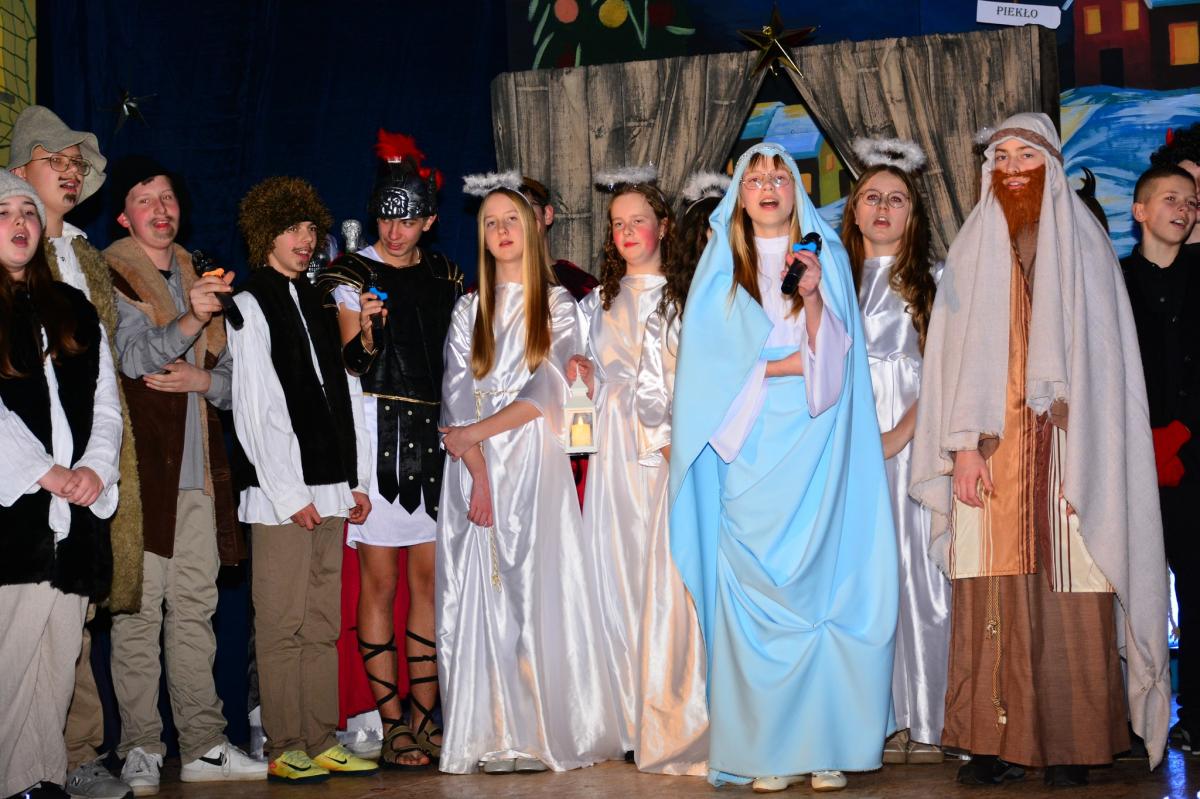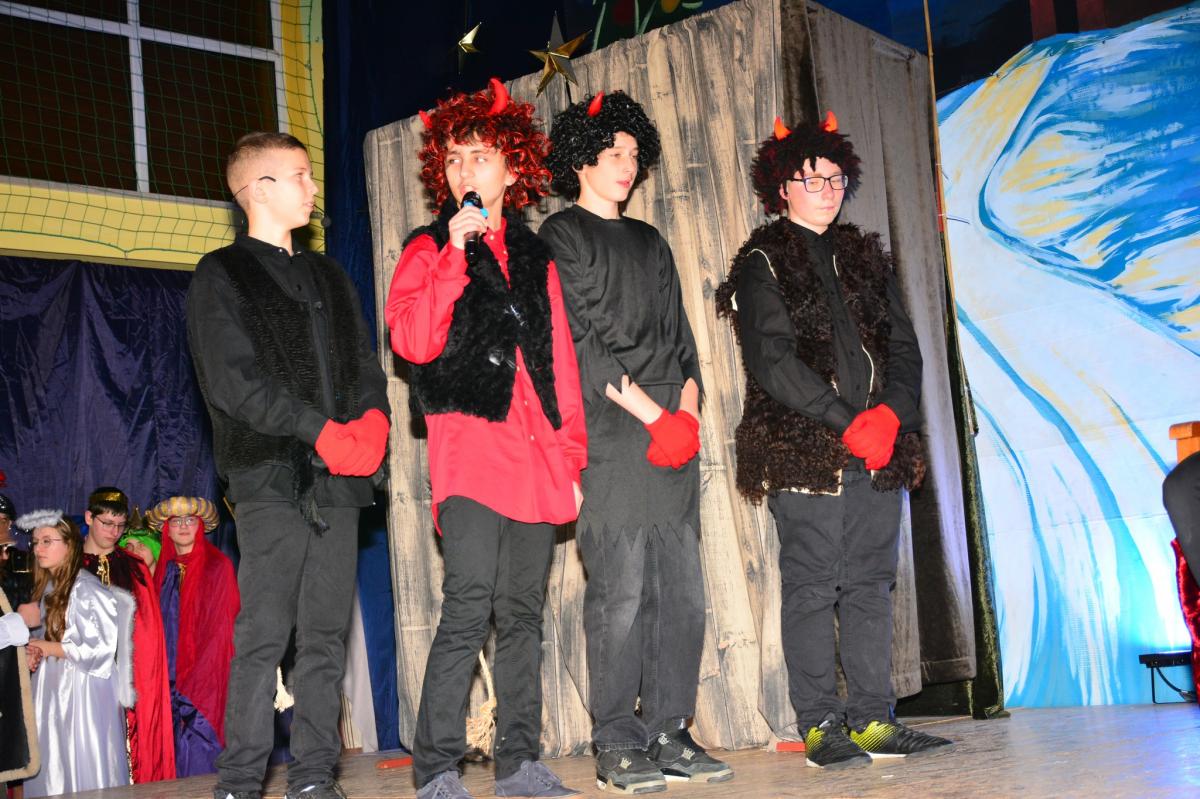 Uczniowie pokazali talent i pełny profesjonalizm prezentując spektakl "Gore Gwiozda, cyli ło piekielnym porusyniu i Jezuska narodzeniu". Występom dzieci towarzyszył również koncert kolęd w wykonaniu Kapeli Ludowej Bukowianie.