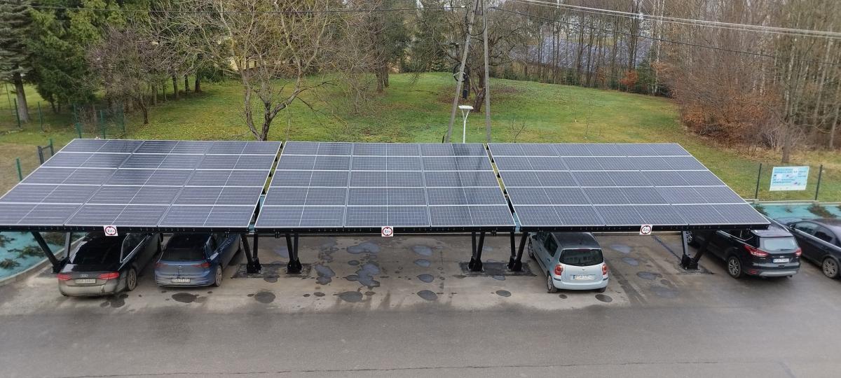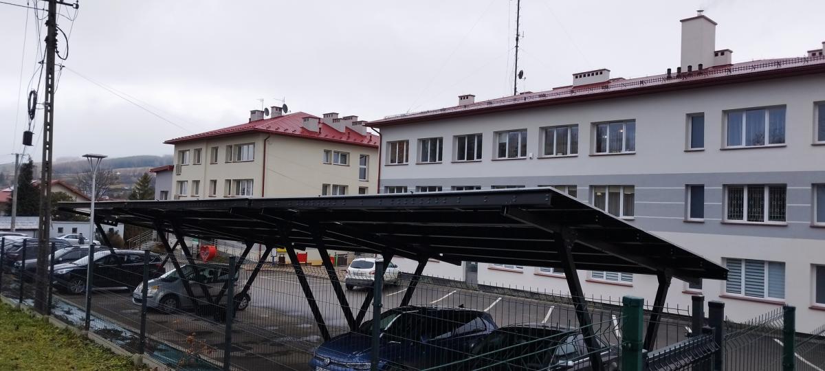 3. Wykonano instalację fotowoltaiczną przy Urzędzie Gminy Bukowsko o mocy 24,42 kW, zamontowaną na trzech CAR-portach, z magazynem energii o pojemności 46,08 kWh, z przeznaczeniem na zwiększenie efektywności energetycznej Urzędu Gminy.
