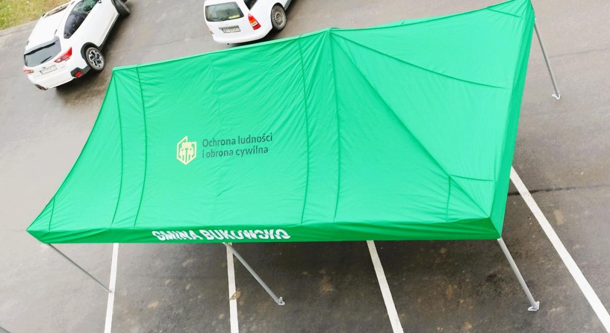 1. Namioty do ekspresowego rozkładania - 5 sztuk - sprzęt kwatermistrzowski dla ratowników i osób poszkodowanych, z przeznaczeniem do używania w sytuacjach awaryjnych, takich jak ewakuacje czy organizacja punktów pomocy.