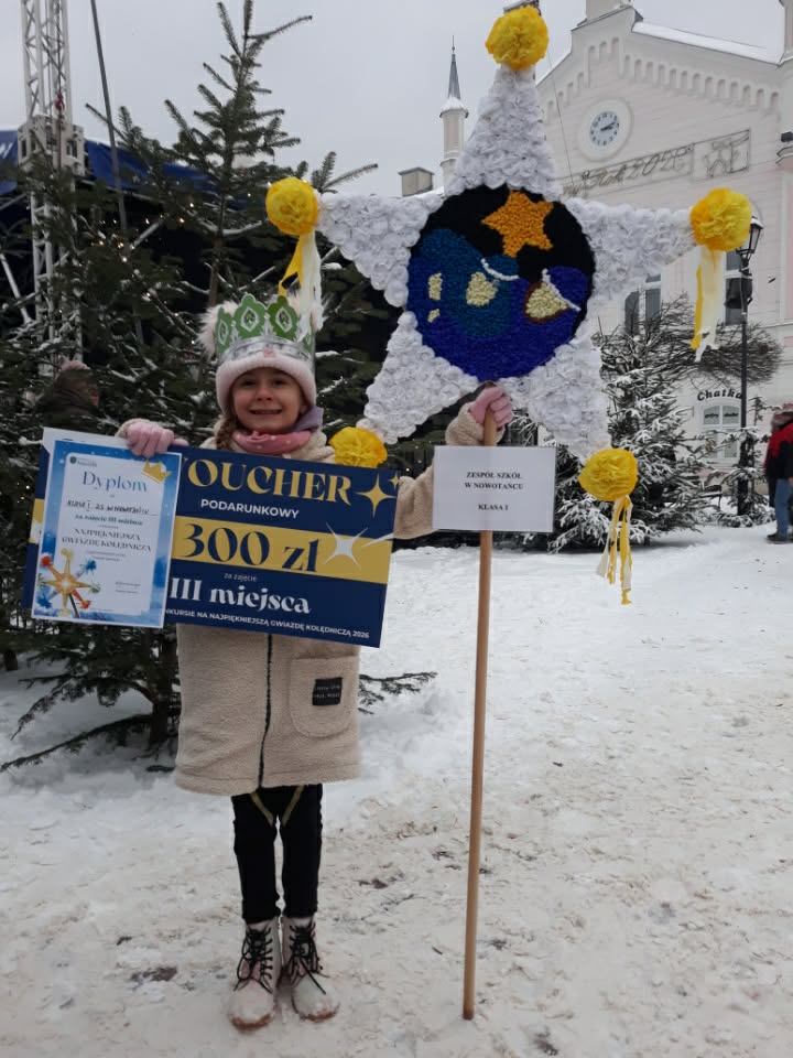 Również uczniowie szkoły podstawowej w Nowotańcu odnieśli znaczący sukces. Gwiazda kolędnicza wykonana samodzielnie przez uczniów klasy I, nawiązująca do dawnych tradycji, wykorzystująca naturalne materiały i wyróżniająca się wyjątkowym urokiem, zdobyła III miejsce w konkursie. Pracę zaprezentowała podczas orszaku jedna z uczennic, wzbudzając duże zainteresowanie i sympatię uczestników wydarzenia. Komisja konkursowa szczególnie doceniła kreatywność dzieci oraz ich zaangażowanie w pielęgnowanie regionalnego dziedzictwa kulturowego.