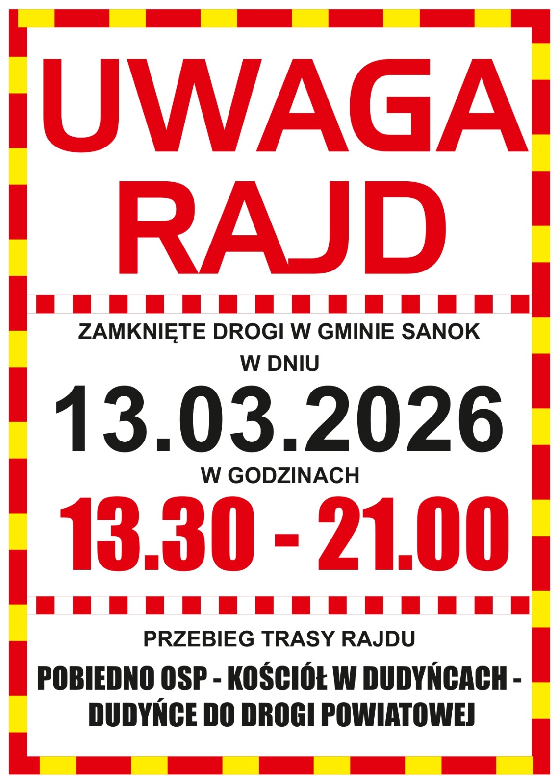 Prosimy również o stosowanie się do poleceń służb porządkowych oraz oznakowania ustawionego na trasach rajdu.