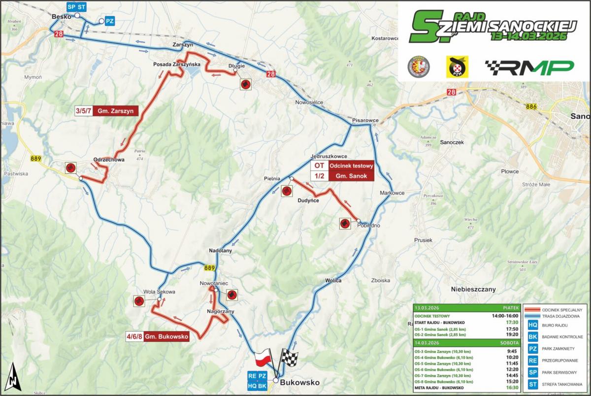 W dniach 13-14 marca 2026 r. na terenie powiatu sanockiego odbędzie się 5. Rajd Ziemi Sanockiej - 1. runda Rajdowych Mistrzostw Południa oraz 1. runda Rajdowego Pucharu Południa.