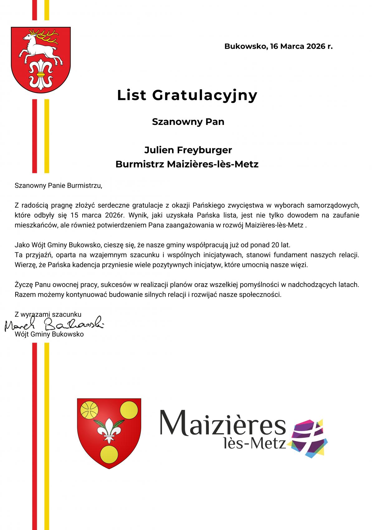 Sukces Juliena Freyburgera w wyborach samorządowych w mieście Maizières-lès-Metz -francuskim partnerze Gminy Bukowsko
