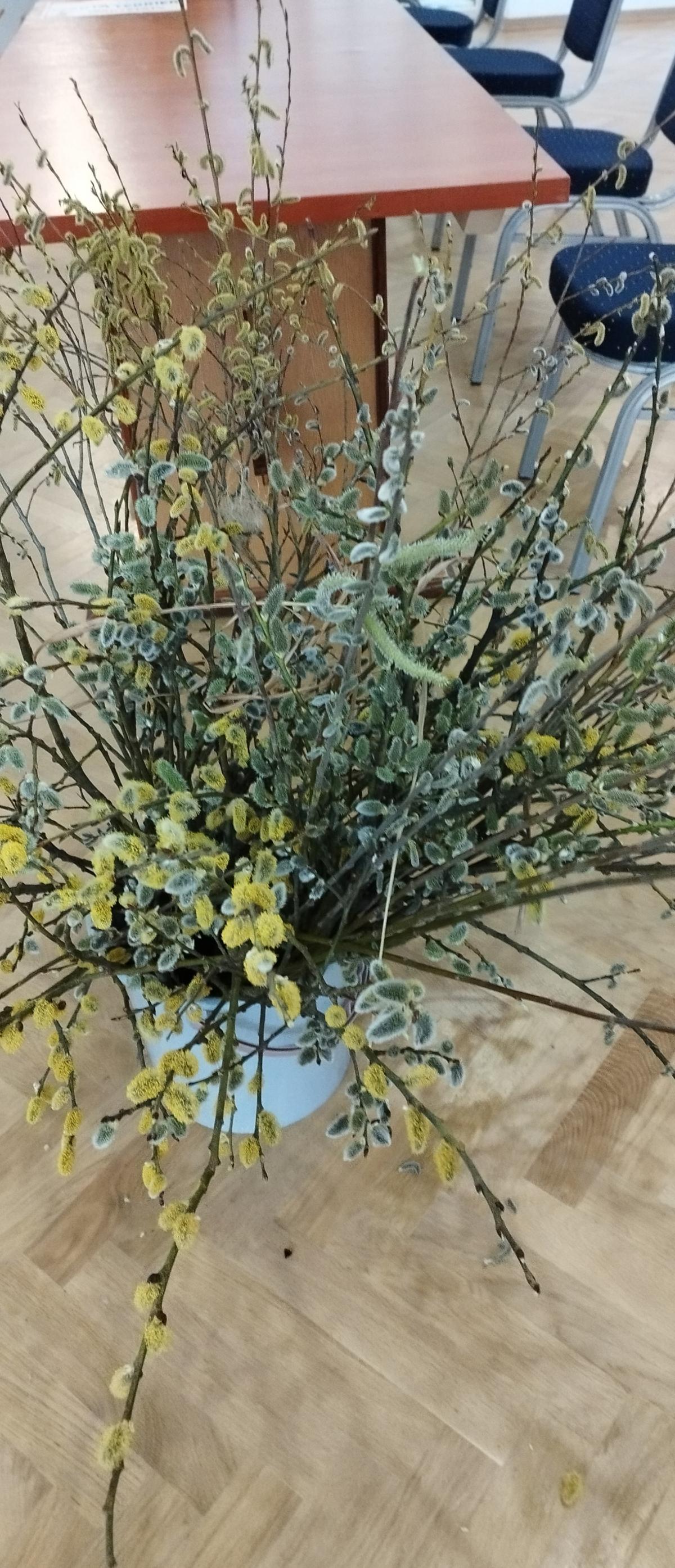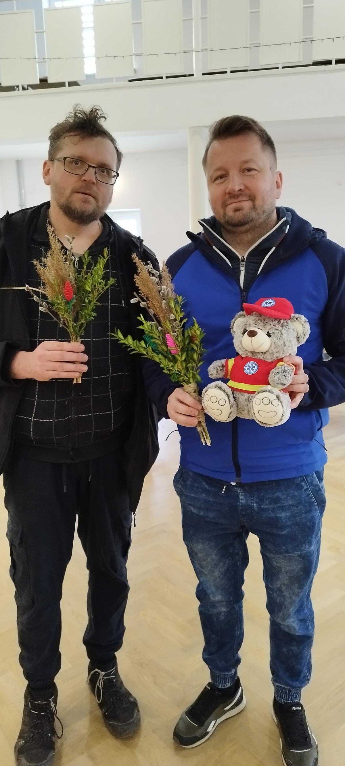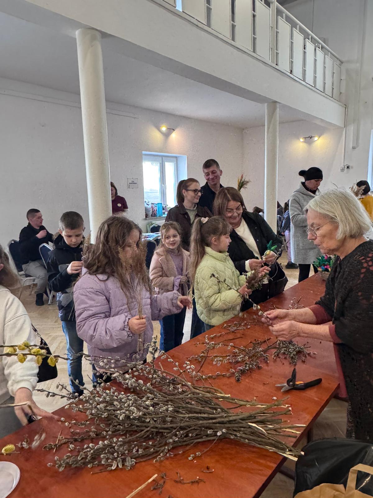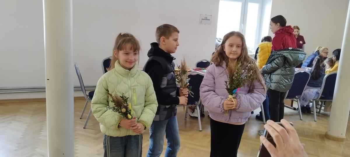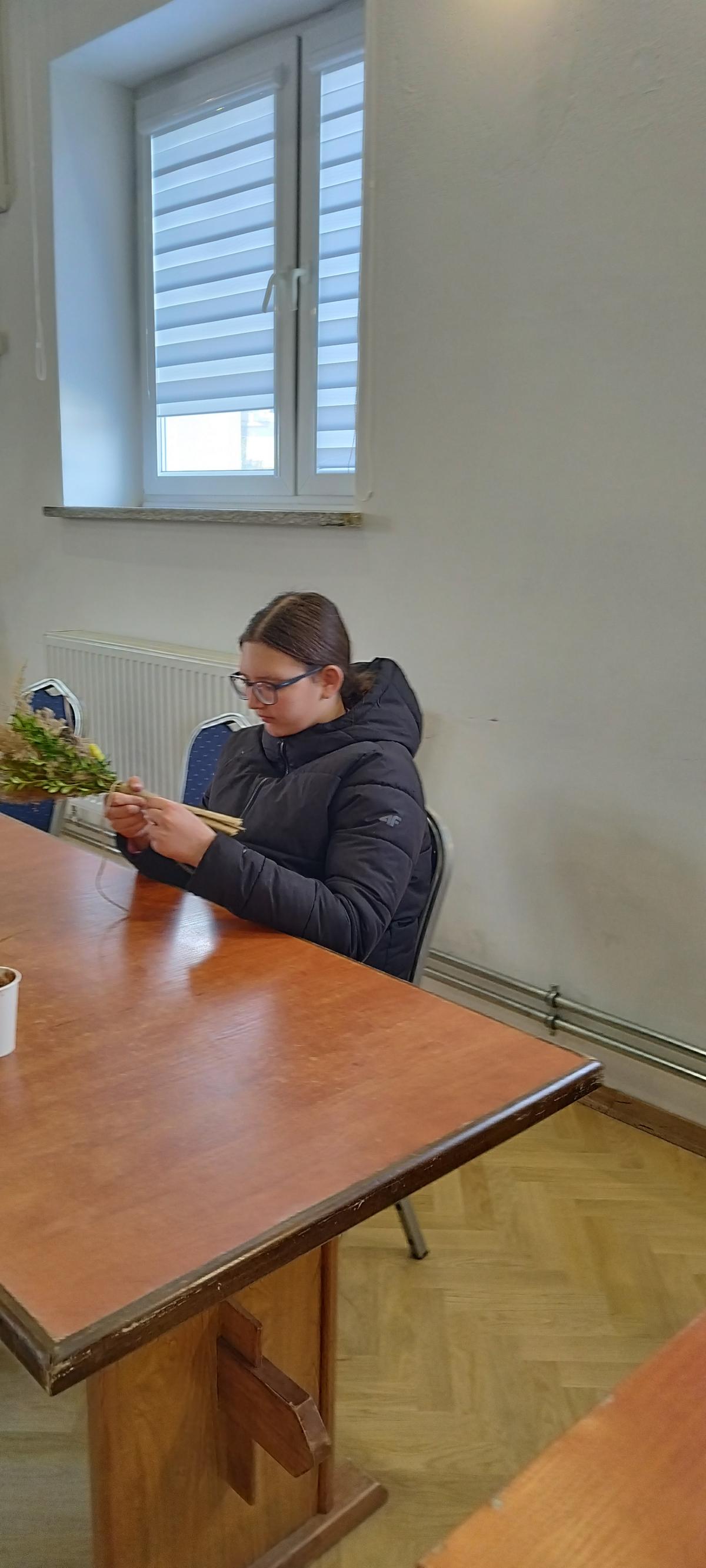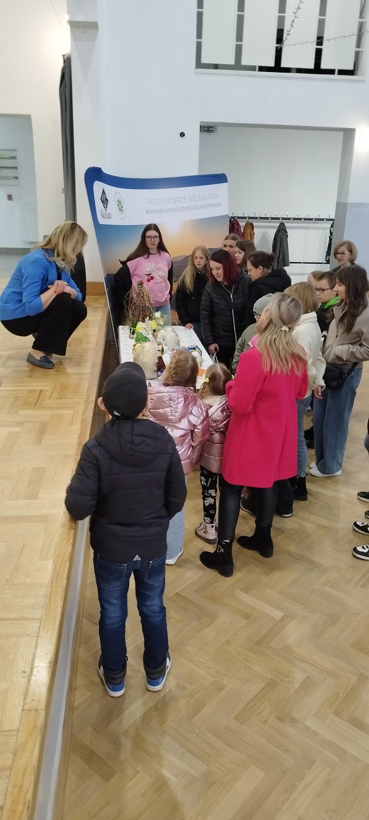 Pięknym akcentem były warsztaty tworzenia tradycyjnych palm wielkanocnych z Panią Martą Terrier, które przyciągnęły zarówno najmłodszych, jak i starszych. Zaangażowali się tutaj nawet mężczyźni, którzy korzystając z podpowiedzi Pani Marty, czasem swoich dzieci, układali niepowtarzalne palmy.