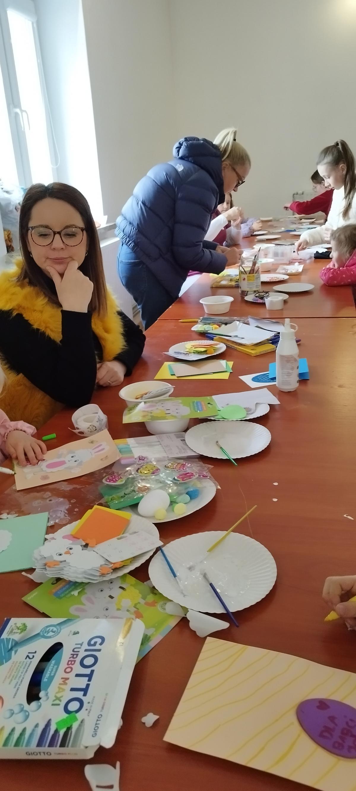 Najmłodsi tworzyli kartki wielkanocne z pracownicami Centrum Usług Społecznych w Bukowsku. Malowanie, wycinanie i przyklejanie wielkanocnych elementów sprawiało wiele radości nie tylko milusińskim, ale także ich rodzicom.