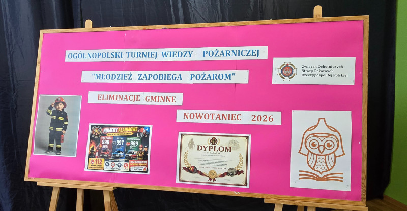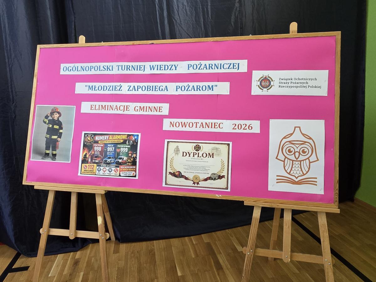9 kwietnia 2026 r. w budynku Zespołu Szkół w Nowotańcu odbyły się gminne eliminacje Ogólnopolskiego Turnieju Wiedzy Pożarniczej „Młodzież Zapobiega Pożarom”.