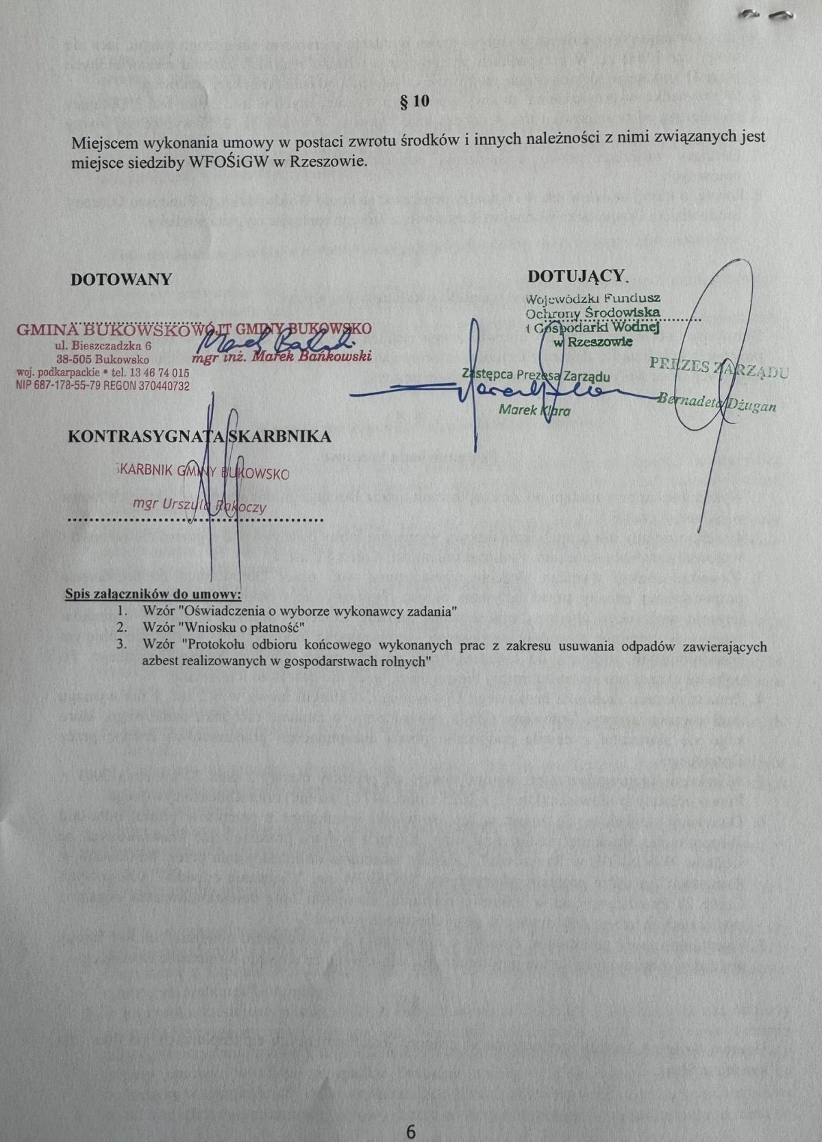 Dokument został zawarty z przedstawicielami Wojewódzkiego Funduszu Ochrony Środowiska i Gospodarki Wodnej w Rzeszowie - na czele z Panią Prezes Bernadetą Dżugan, przy udziale Zastępcy Prezesa Marka Klary.