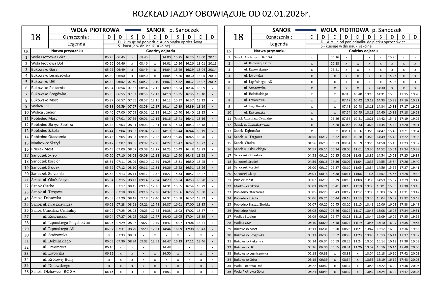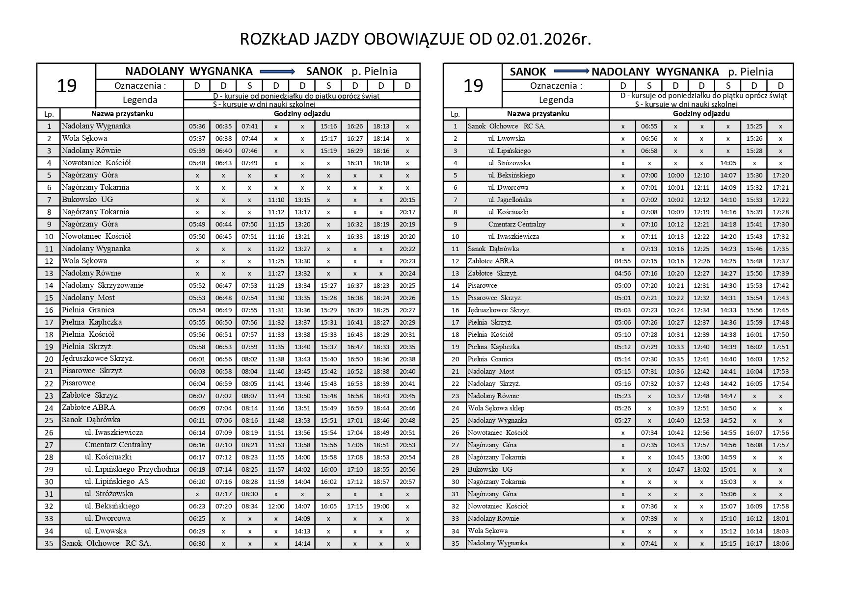 Nowy rozkłady jazdy od 2 stycznia 2026 r.(do pobrania poniżej)
