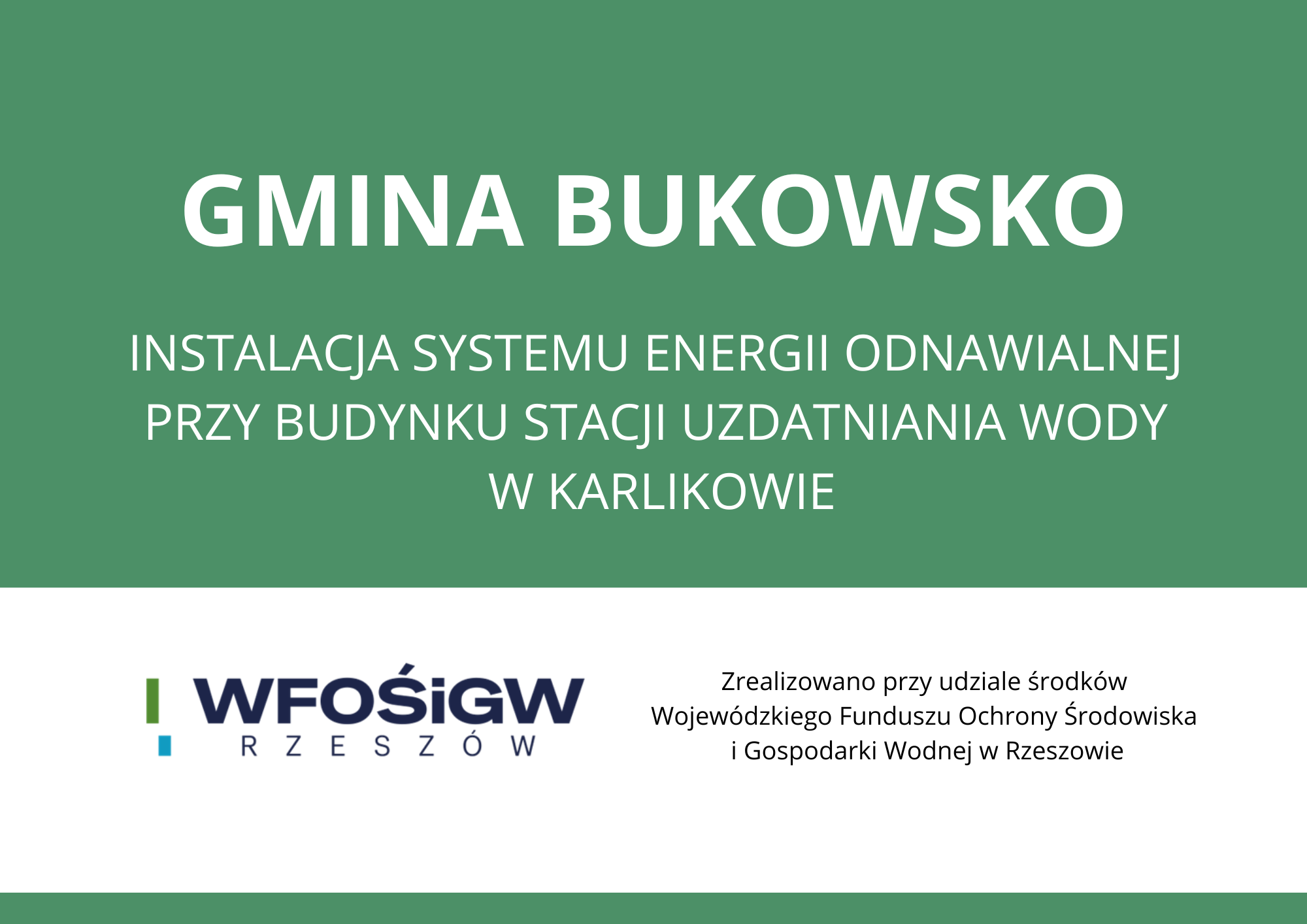 „Instalacja systemu energii odnawialnej przy budynku stacji uzdatniania wody w Karlikowie”